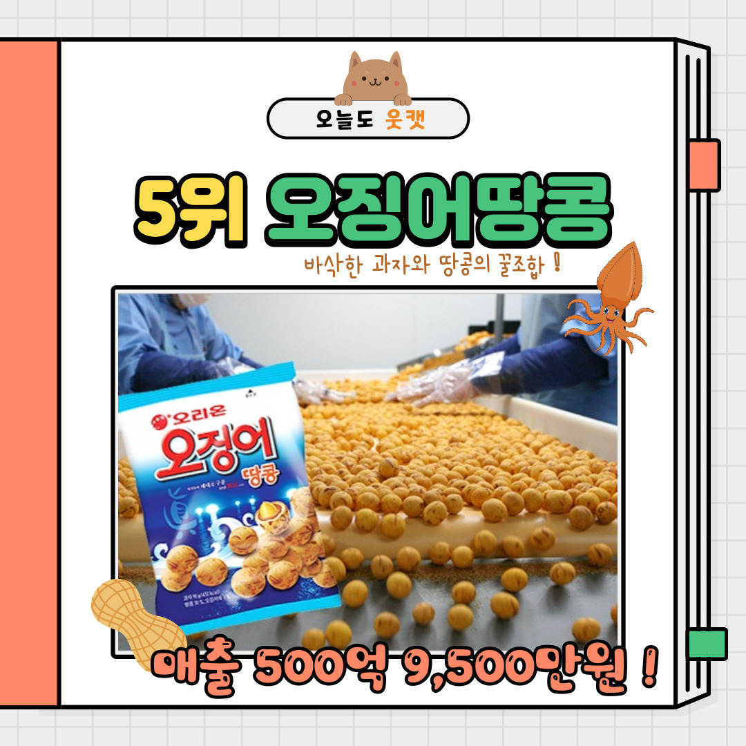 순위 정하는 궁그미 21년 가장 많이 팔린 과자 Top 5 by 웃캣 2022. 5. 10. 21년 우리나라에서 가장 많이 팔린 과자 Top5를 알아봤다냥 스낵 기준이고 판매 수량이 아닌 매출액 기준이얌 5위 오징어 땅콩 4위 프링글스 3위 포카칩 2위 새우깡 1위 꼬깔콘 궁금한 순위가 있다면 댓글 남겨주라냥 공유하기 게시글 관리 웃 게 해 줄 캣 저작자표시 (새창열림)