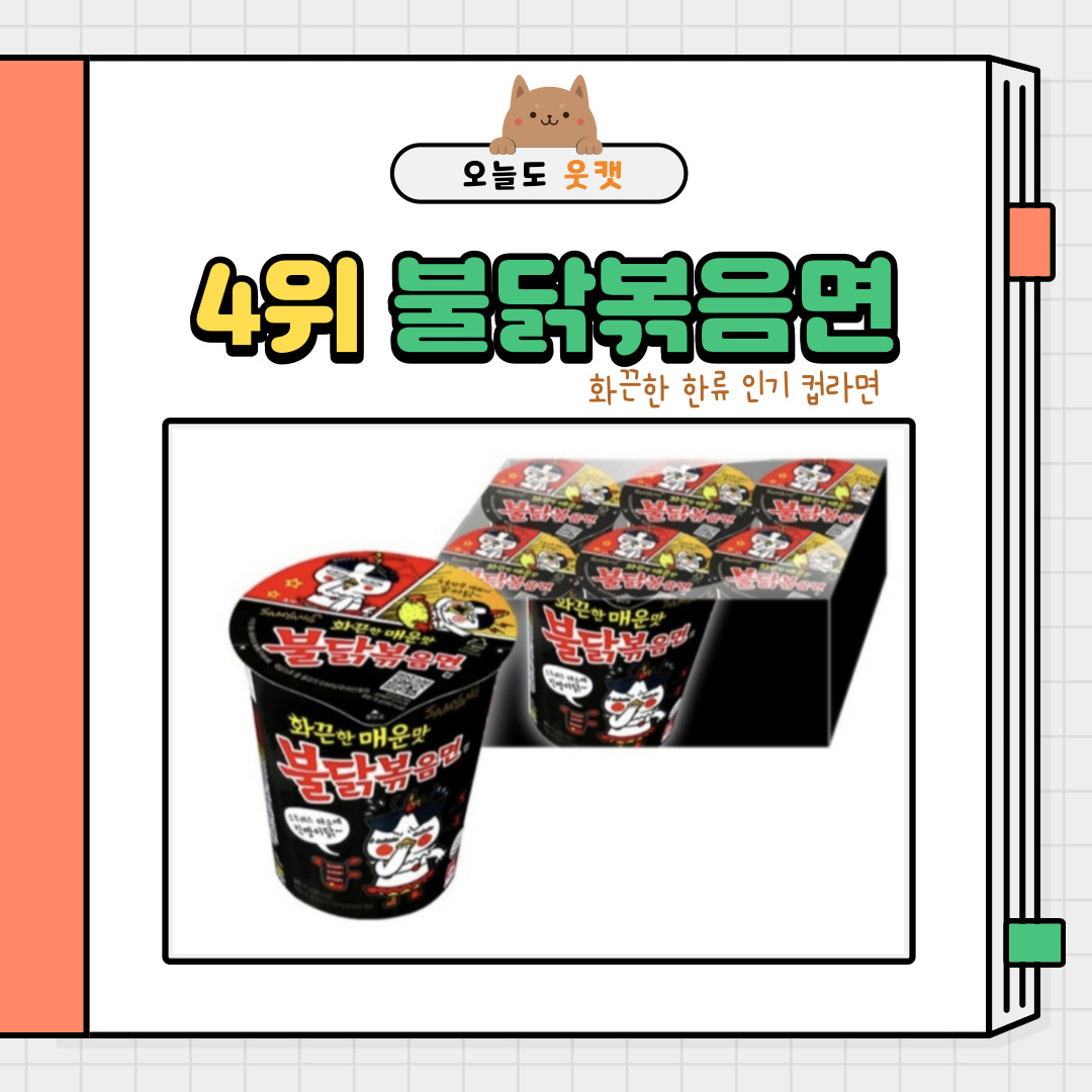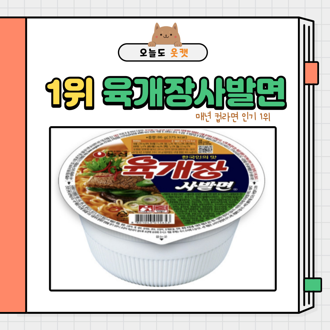 카테고리 없음 2021년 가장 많이 팔린 컵라면 Top 5 by 웃캣 2022. 5. 12. 2021년 가장 많이 팔렸던 인기 컵라면 Top 5!! 5위 신라면 4위 불닭볶음면 3위 왕뚜껑 2위 김치사발면 1위 육개장사발면 역시 1위는 예상대로 육개장사발면,, 불닭볶음면은 조금 의외다냥~ 공유하기 게시글 관리 웃 게 해 줄 캣 저작자표시 (새창열림)
