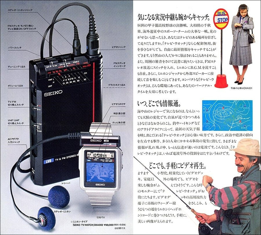 세계최초의 티비 수신 손목시계. 출시년도 1982년.