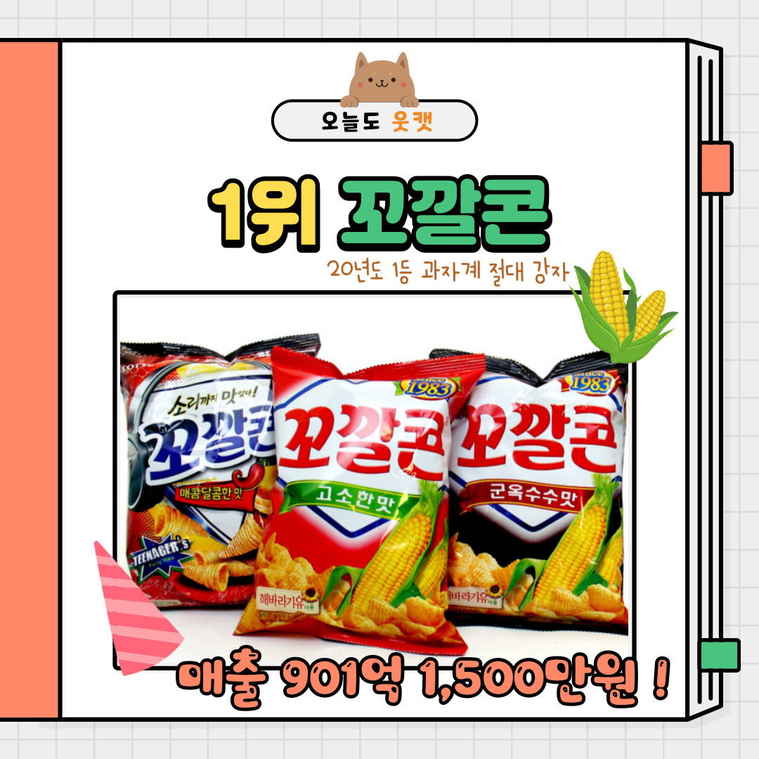 21년 우리나라에서 가장 많이 팔린 과자 Top5를 알아봤다냥